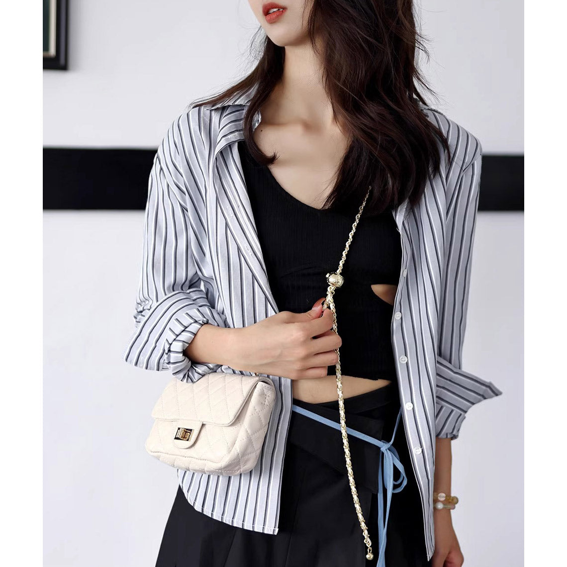 ✪ DimensionsSize detail (1 inch = 2.54cm): W: 17 cm, D: 5.5 cm, H: 11.5 cm✪ Main FeaturesWays to Wear: Crossbody bag/Shoulder bagMaterial: Top grain leatherClosure Type: Twist lockInside Structure: 1 main compartment, 1 slide pocket✪ ColorColor Classification: BlackHardware Color: GoldLining: Faux leather